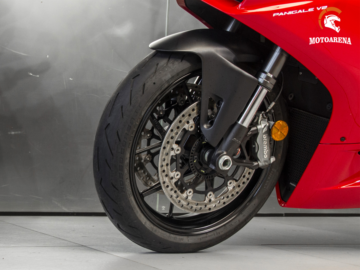 Panigale V2 получил полностью светодиодную оптику, переработанный обтекатель с улучшенной аэродинамикой и 4,3-дюймовый TFT-дисплей. Электронный пакет включает ABS Cornering, контроль тяги (DTC), контроль торможения двигателем (EBC), режимы езды и систему контроля подъёма переднего колеса (DWC).