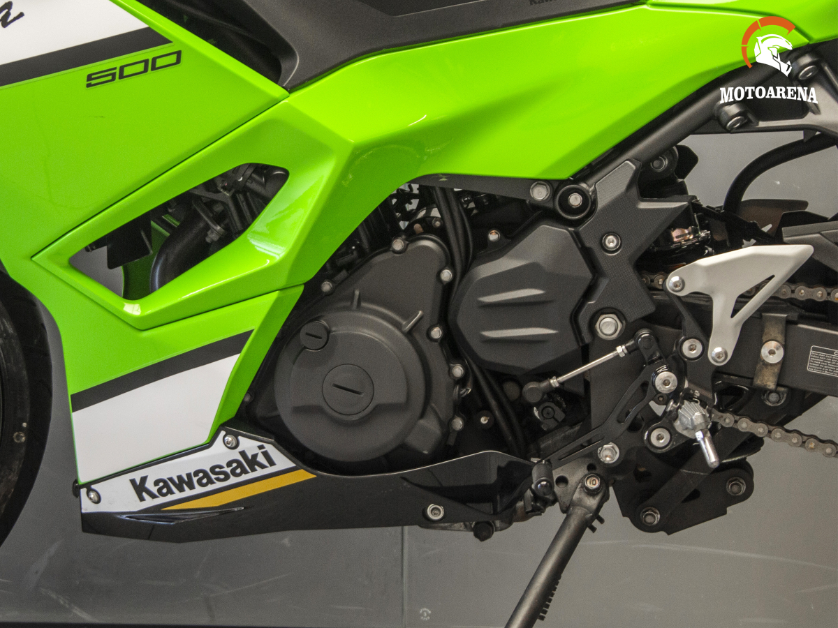 Двигатель: 2‑цилиндровый рядный, 4‑тактный, объём 498 см³, жидкостное охлаждение.