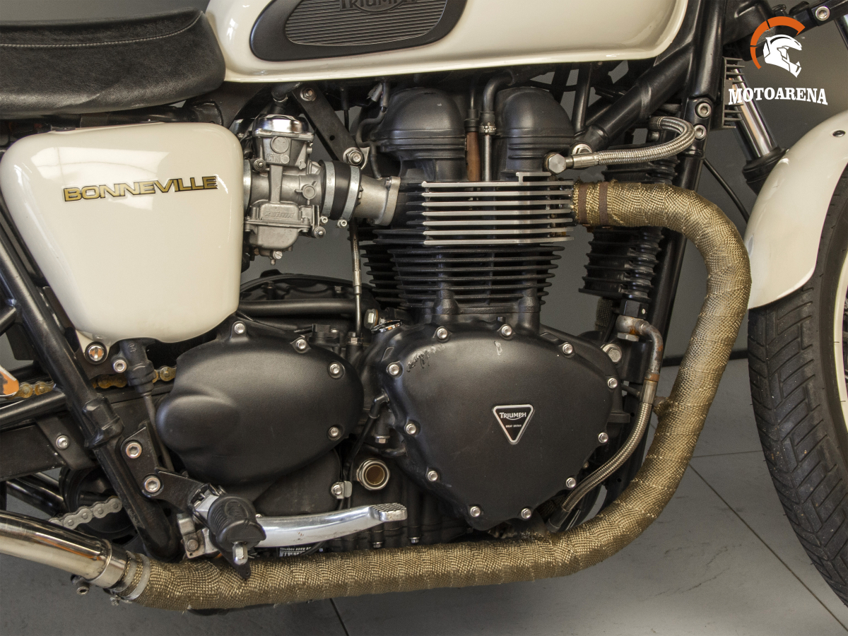 Мотоцикл Triumph Bonneville T100 2012 года — это классический представитель линейки Modern Classic, оснащенный двухцилиндровым двигателем с воздушным охлаждением. В 2012 году модель сохраняла традиционный облик 1960-х годов с современным электронным впрыском топлива, замаскированным под карбюраторы.
