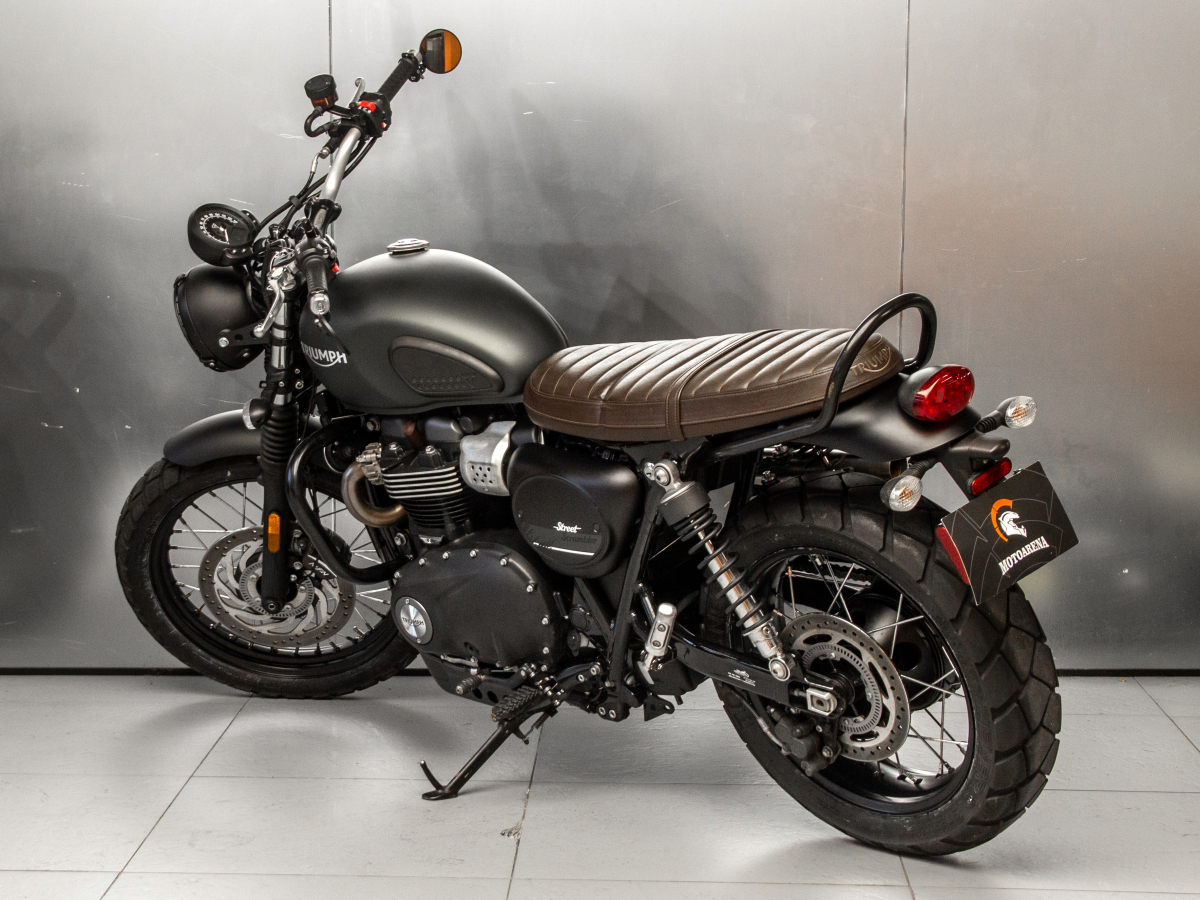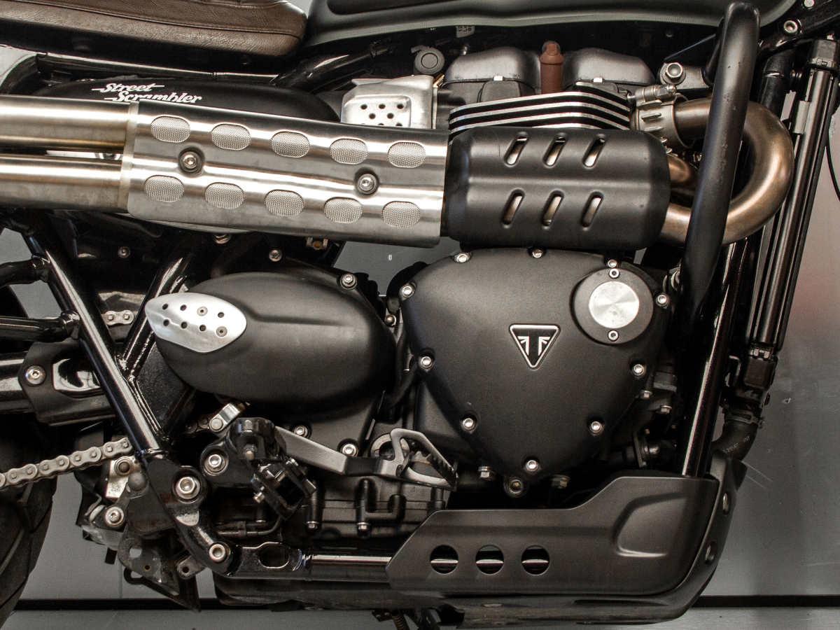 Модель оснащена 900-кубовым двухцилиндровым двигателем Bonneville HT (High Torque), выдающим 65 л.с. и 80 Н·м крутящего момента. Благодаря плавной тяге на низких оборотах и шестиступенчатой коробке передач, Street Scrambler отлично подходит как для городских улиц, так и для лёгкого бездорожья.